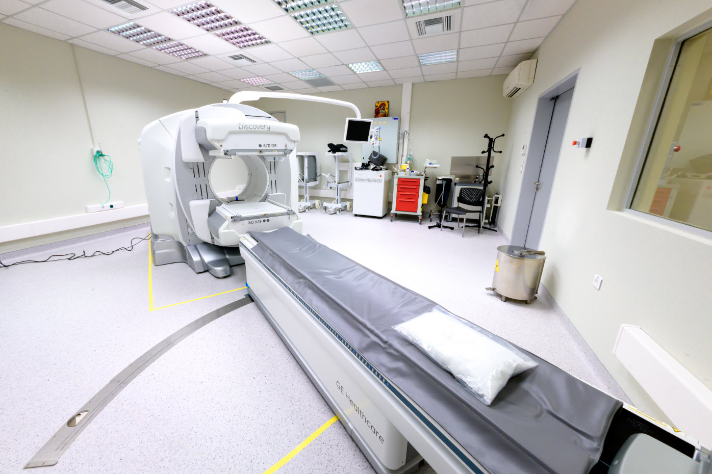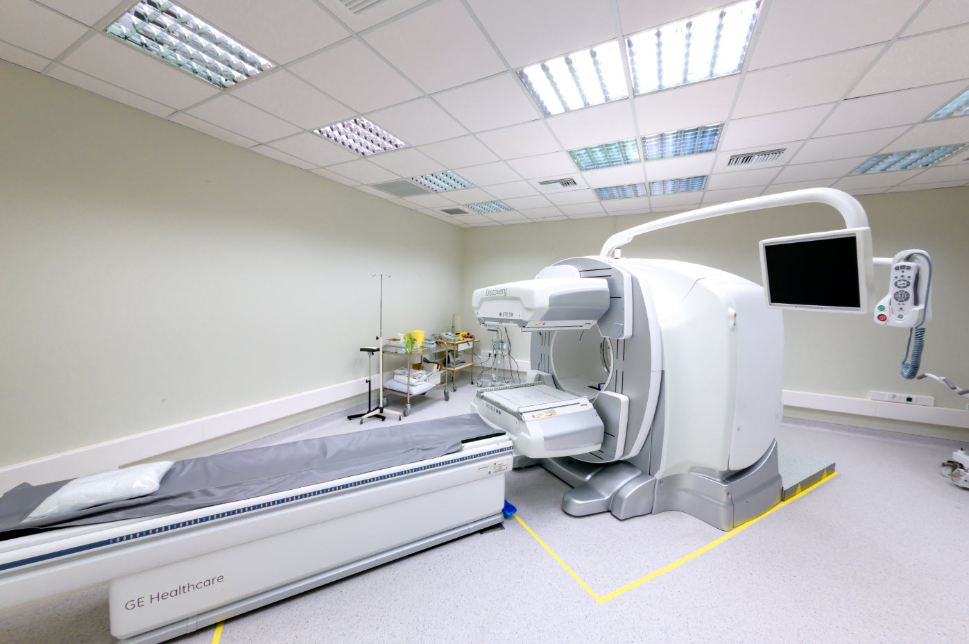 Εκτελούνται όλες οι εξετάσεις Πυρηνικής Ιατρικής (Σπινθηρογραφήματα) που γίνονται παγκοσμίως αλλά με κάποιους σχετικούς περιορισμούς που εξαρτώνται: από τον υπάρχοντα εξοπλισμό, από την ύπαρξη ή όχι κοστολόγηση των εξετάσεων από τα διάφορα ασφαλιστικά ταμεία και από τα υπάρχοντα ραδιοφάρμακα που διακινούνται στην Ελλάδα.