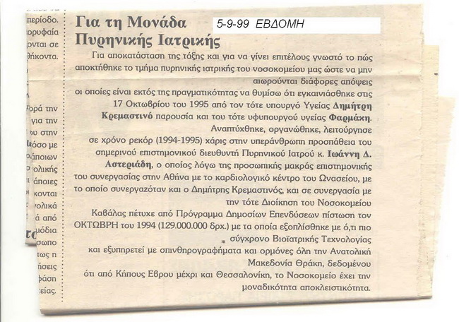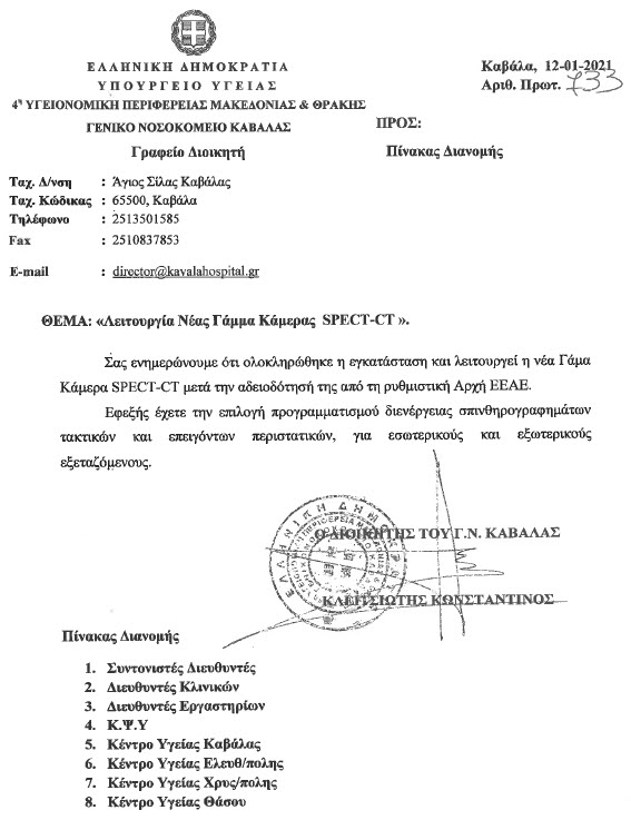 Λειτουργία νέου Τμήματος Πυρηνικής Ιατρικής Α-2 (Νέου Νοσοκομείου Καβάλας-Άγιος Σύλας) από 04/07/2010 έως και σήμερα.
