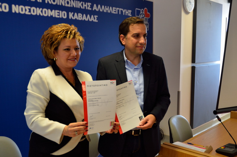 Από την πλευρά της η κ. Παπαδοπούλου, δήλωσε ότι μετά από πολλή δουλειά, επιμονή και υπομονή, το Νοσοκομείο Καβάλας έλαβε τις άνωθεν δύο πιστοποιήσεις, ενώ στάθηκε κυρίως στα οφέλη από το συγκεκριμένο επίτευγμα. «Το Νοσοκομείο μας θα έχει πολλά οφέλη από την εφαρμογή ενός πιστοποιημένου συστήματος διαχείρισης επαγγελματικής υγείας και ασφάλειας: Επιτυγχάνεται η μείωση του αριθμού, της έκτασης και της σοβαρότητας των ατυχημάτων των επαγγελματικών ασθενειών, η ελαχιστοποίηση ή η εξάλειψη της πιθανότητας νομοθετικών παραβάσεων, η συστηματική προσέγγιση στην εκτίμηση της επικινδυνότητας και στη διαχείριση κινδύνων για την υγεία και την ασφάλεια στην εργασία, καλύτερες συνθήκες εργασίας και βελτιωμένο ηθικό στο προσωπικό, επίδειξη επιμέλειας και βελτίωση της εικόνας του Νοσοκομείου προς όλα τα ενδιαφερόμενα μέρη και το ευρύ κοινό, ενώ αποτελεί και απτή απόδειξη μιας υπεύθυνης πολιτικής σε θέματα υγείας και ασφάλειας στην εργασία. Παράλληλα, διασφαλίζεται η καταλληλότητα της φροντίδας που παρέχεται αναφορικά με τις κλινικές ανάγκες του ασθενούς, ότι η φροντίδα για τον ασθενή είναι συντονισμένη ανάμεσα στους επαγγελματίες υγείας, στους οργανισμούς και στο πέρασμα του χρόνου, ότι η φροντίδα στον ασθενή παρέχεται με τον σωστό τρόπο, η απαιτούμενη ασφάλεια του ασθενή κατά την διάρκεια της νοσηλείας του, ενώ επιδιώκεται η βελτιστοποίηση της ικανοποίησης του ασθενή μέσω της παροχής ποιοτικών υπηρεσιών υγείας», ανέφερε η κ. Παπαδοπούλου.