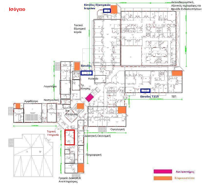 Αρμοδιότητα της Τεχνικής Υπηρεσίας είναι ο προγραμματισμός και η εκτέλεση των απαραίτητων έργων ανάπτυξης, συντήρησης, ανανέωσης και βελτίωσης των κτιριακών και Η/Μ εγκαταστάσεων του Νοσοκομείου καθώς και η προμήθεια του απαραίτητου εξοπλισμού.