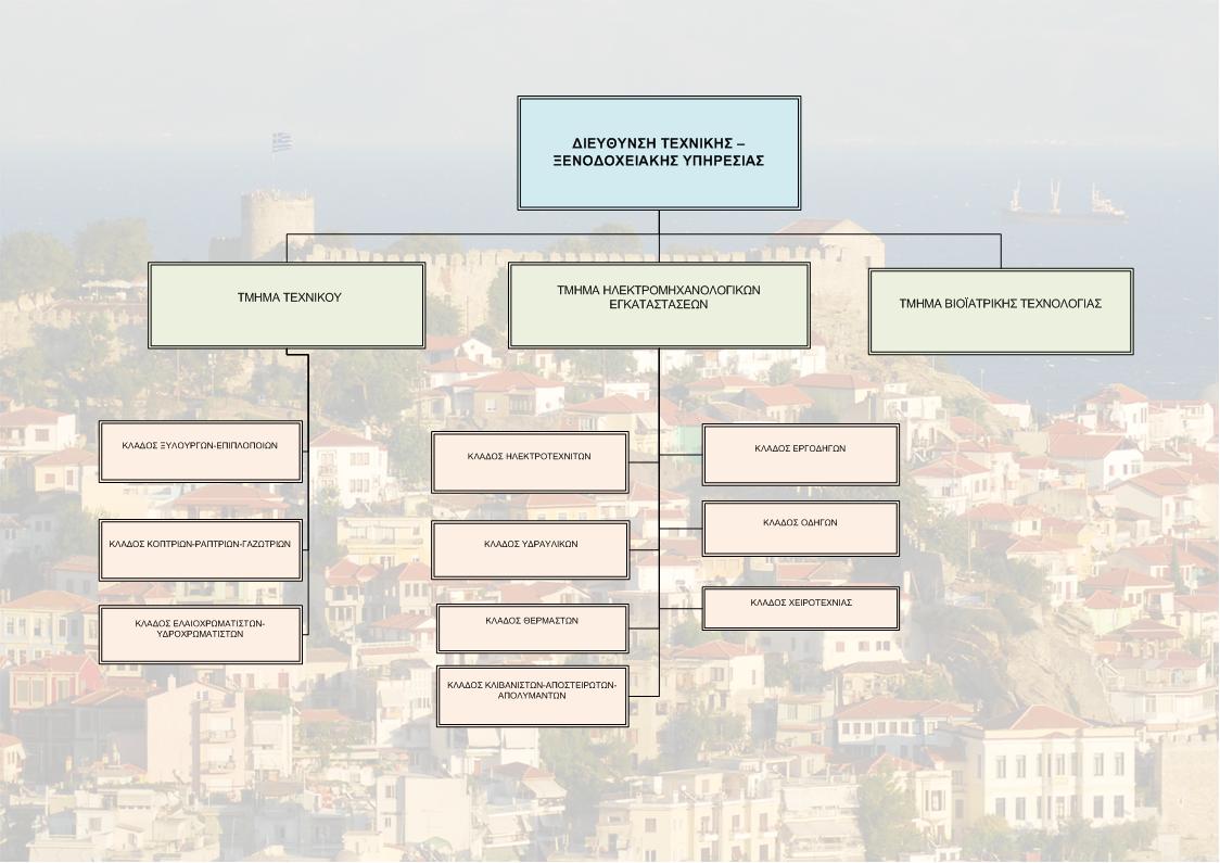 Η Τεχνική Υπηρεσία αποτελείται από τα Τμήματα Τεχνικού, Ηλεκτρομηχανολογικών Εγκαταστάσεων και Βιοϊατρικής. Κάντε click στα Τμήματα για να δείτε περισσότερες πληροφορίες και να ανοίξετε τις σχετικές σελίδες σε νέα καρτέλα.